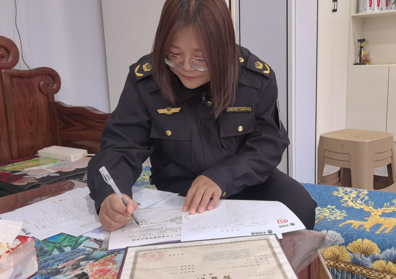 楊永春上門服務(wù),在商戶家中協(xié)助處理營業(yè)執(zhí)照相關(guān)業(yè)務(wù)。受訪者供圖